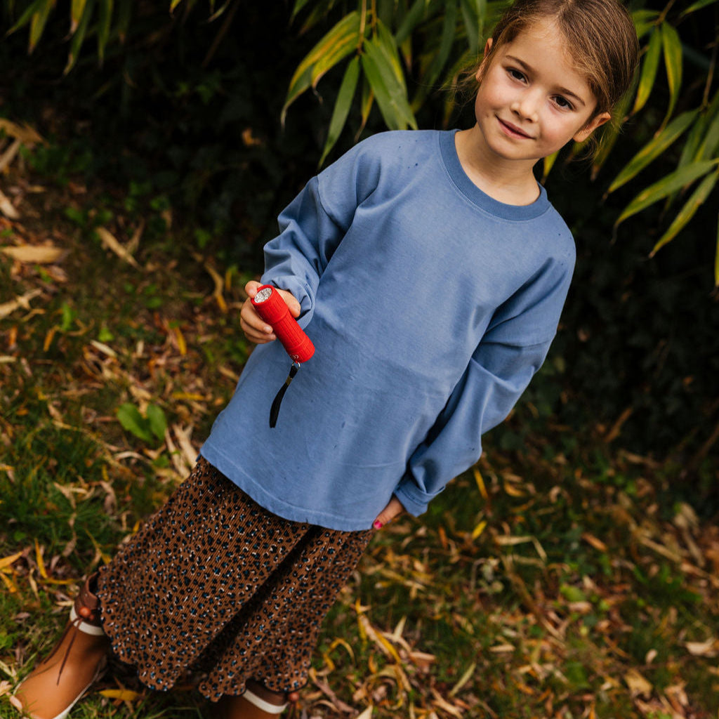 Lange rok met fijne plooitjes in luipaardmotief en doorgestikte naad.