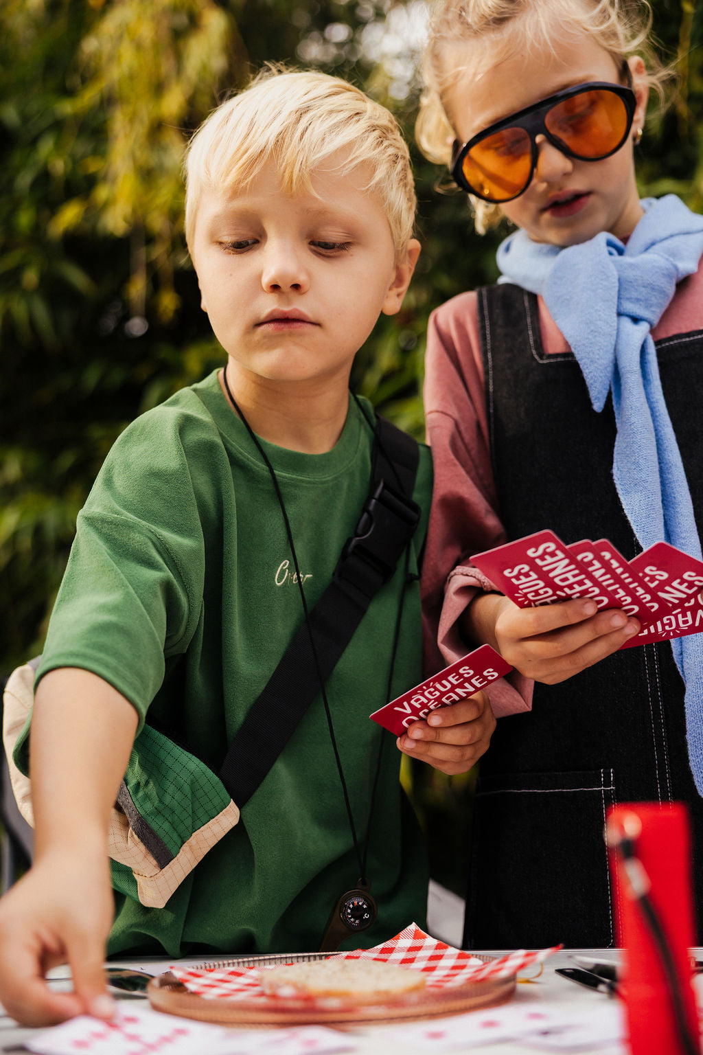 Dikke losse t-shirt in fluweel met geborduurd opschrift.
